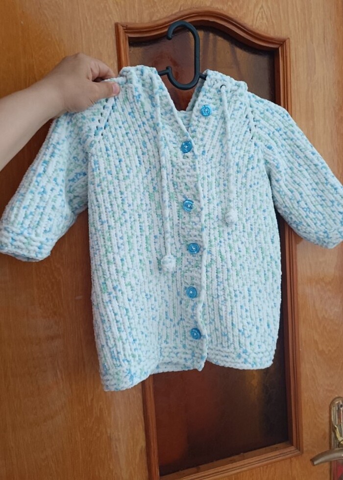 Kapşonlu el örgüsü Bebek hırkası temiz kullanıldı