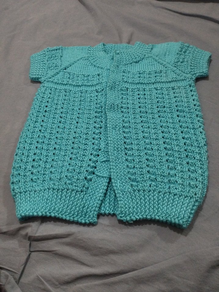 El örgüsü sıfır bebek yelek. Düğme dikilmesi gerekli. Ölçülerini fotoğraf olarak ekledim
