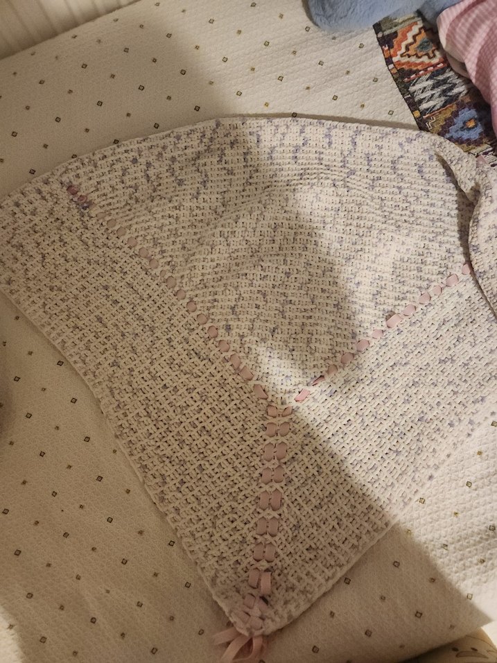 El örgüsü Bej Nakışlı bebek Battaniyesi