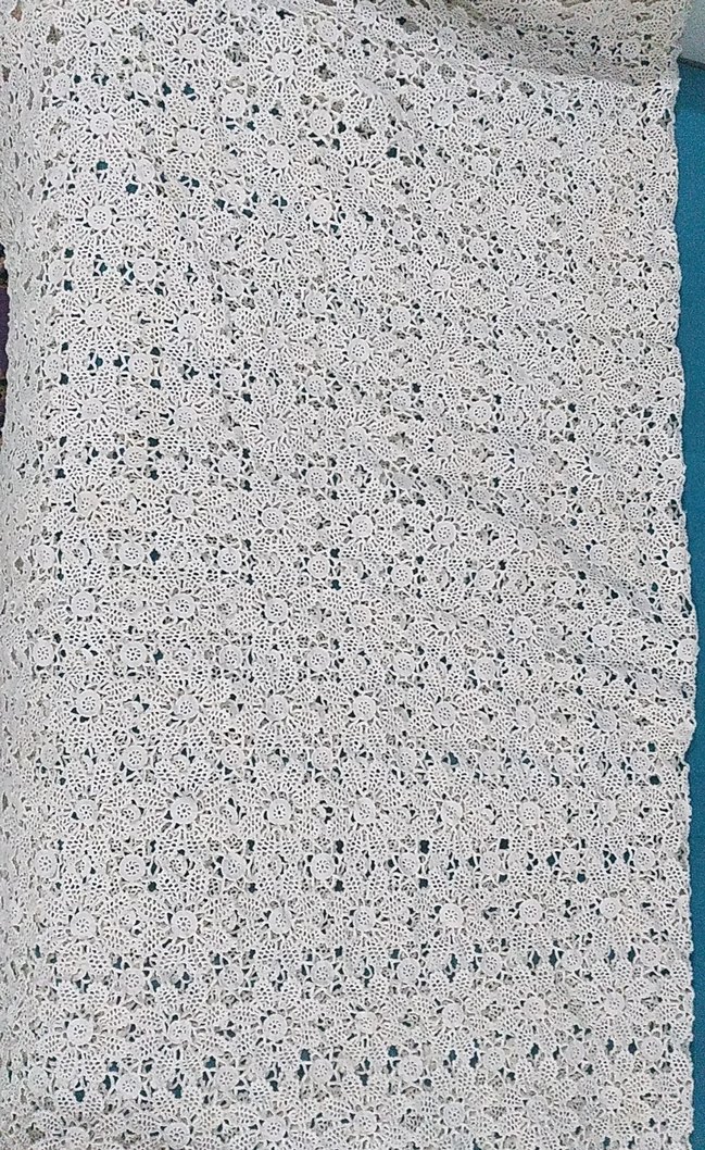 Geleneksel el işiyle yapılmış, çiçek desenli beyaz dantel 12 Kişilik el yapımı dantel masa örtüsü.