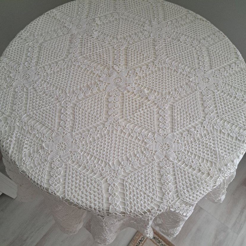 El Örgüsü Beyaz Dantel Masa Örtüsü