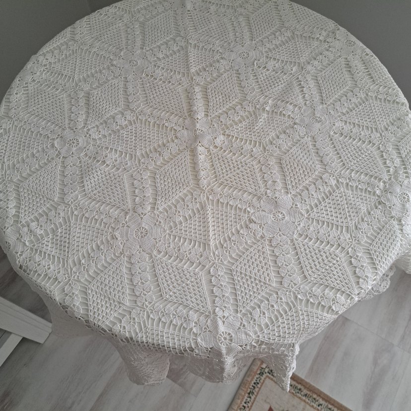 El Örgüsü Beyaz Dantel Masa Örtüsü