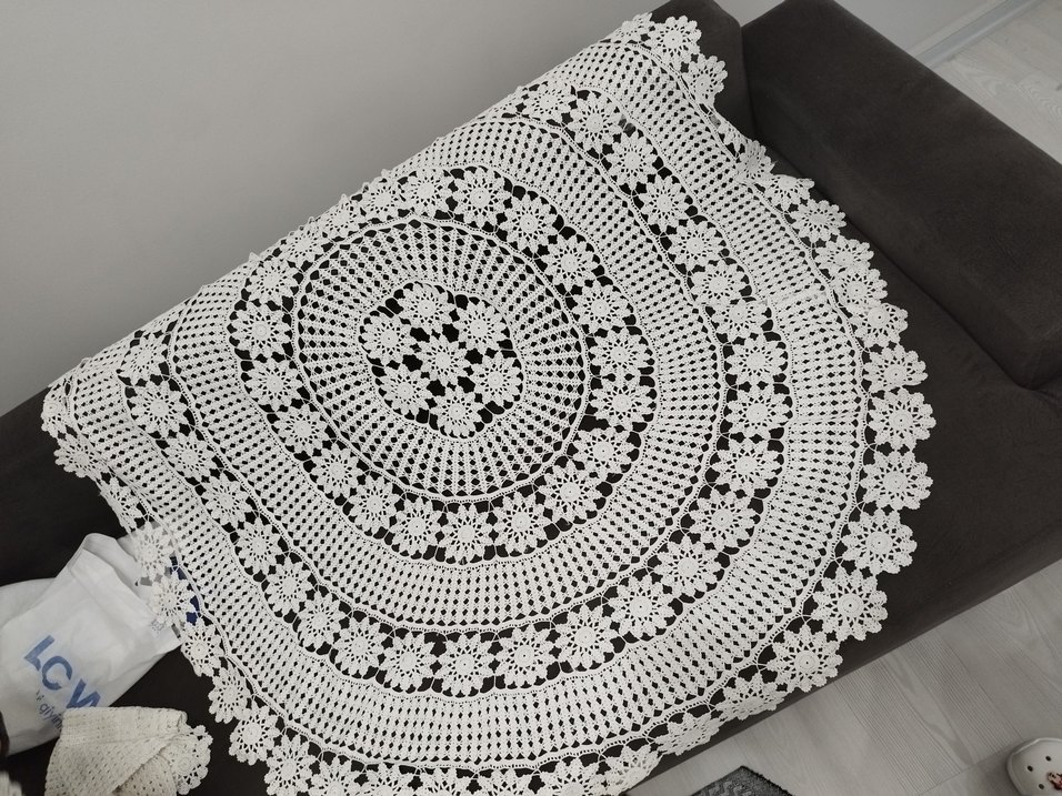 El Örgüsü Beyaz Dantel Masa Örtüsü
