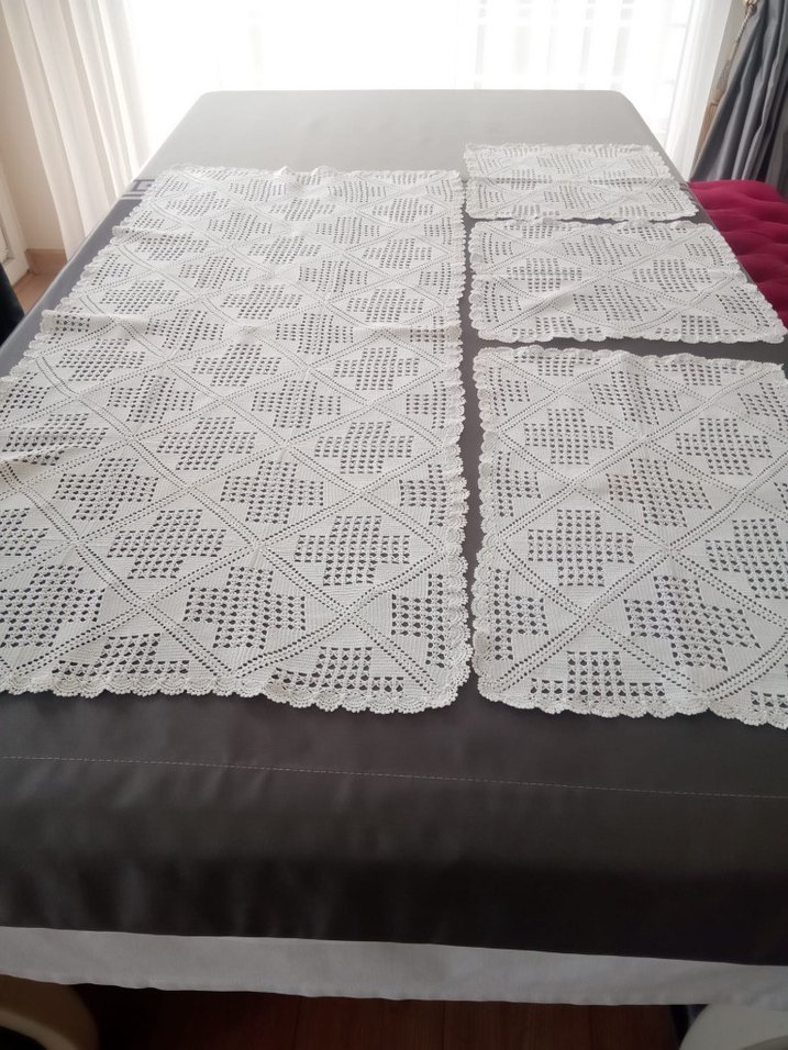 Takım 1 adet şömentabla, 1 adet uzun sehpa örtüsü ve 2 adet küçük sehpa örtüsünden oluşmaktadır. Şömentabla ölçüsü eni 100 cm boyu ise 43 cm dir. Büyük sehpa eni 42 cm boyu 29 cm, küçük sehpa ise kare şeklinde 32x32