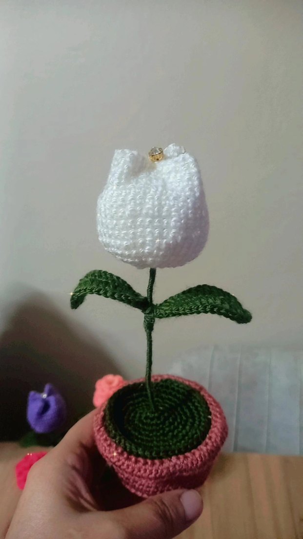El Örgüsü Beyaz Lale Dekoratif Çiçek
