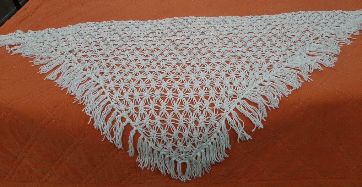 El örgüsü beyaz şal. Çok temiz. Sandıktan. Çok şık el emeği üçgen şal.