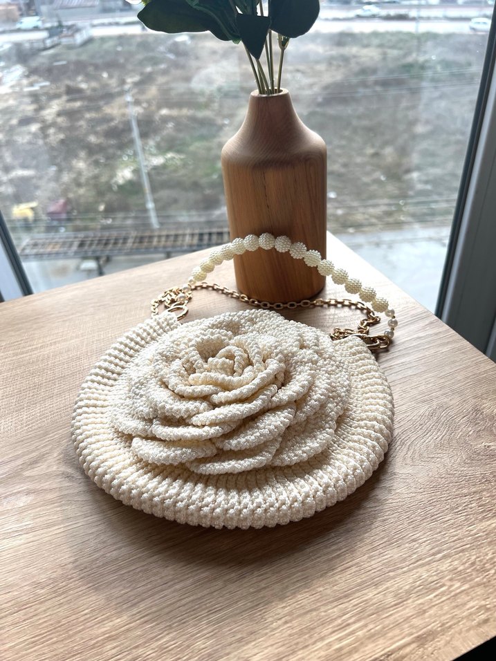 Bu beyaz örgü kadın çantası, boncuk işlemeli çiçek deseni ve bohem Paris tarzını yansıtır. Düğün gibi özel anlar için uygundur.