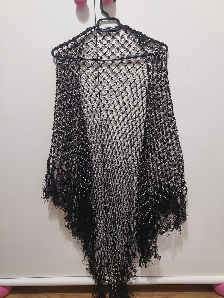 El Örgüsü Boncuk İşlemeli Kadın Şal | Şık Sırta Atmalık