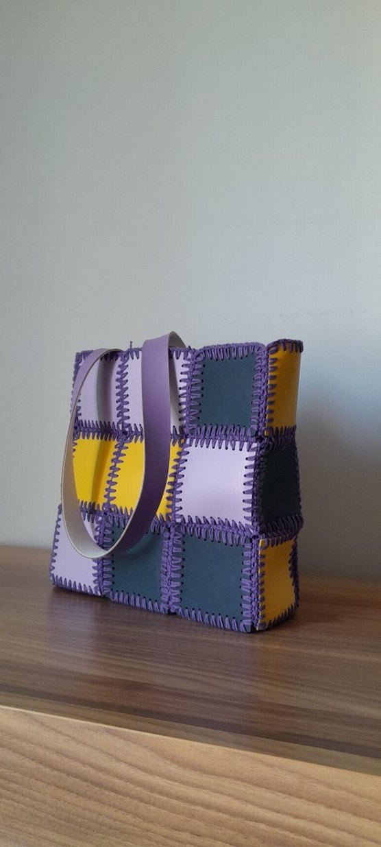 El Örgüsü Çanta Renkli Ekose Kadın Çanta Fermuarlı