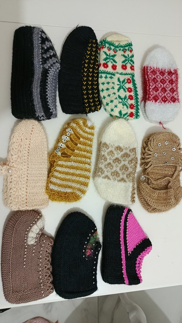 tanesi 100 TL Farklı renk ve desenlerde, yumuşak ve sıcak dokulu, süslemeli el örgüsü patik çeşitleri.