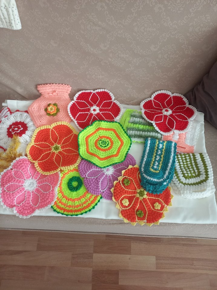 Çiçek desenli, çeşitli canlı renklerde el yapımı ceyizlik lif çeşitleri sıfır ürün ebatları büyük ihtiyaç fazlası ürün yırtık yıpranma leke vs yoktur. adet fiyatı 125 tl toplu alımlarda indirim yapılır..