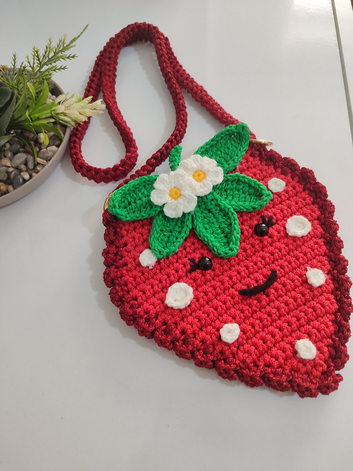 El Örgüsü Çilek Desenli Bohem Çanta