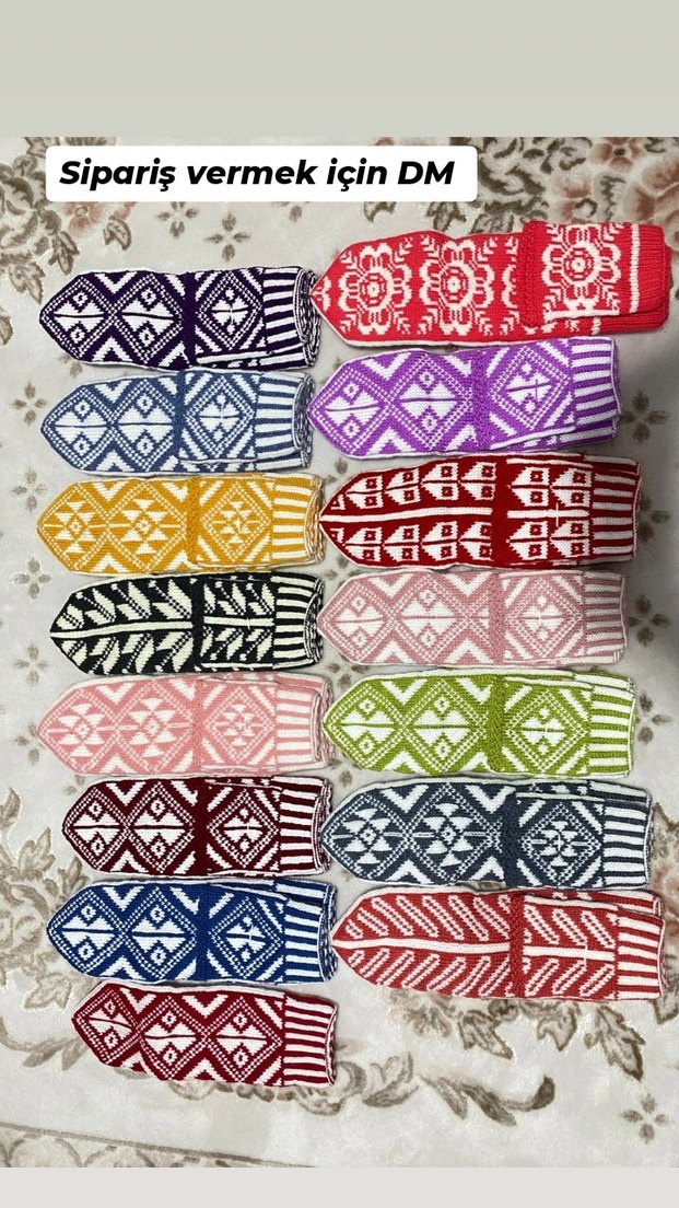 Çeşitli renklerde el örgüsü, geleneksel desenli renkli çoraplar. Sipariş için DM'den ulaşabilirsiniz.