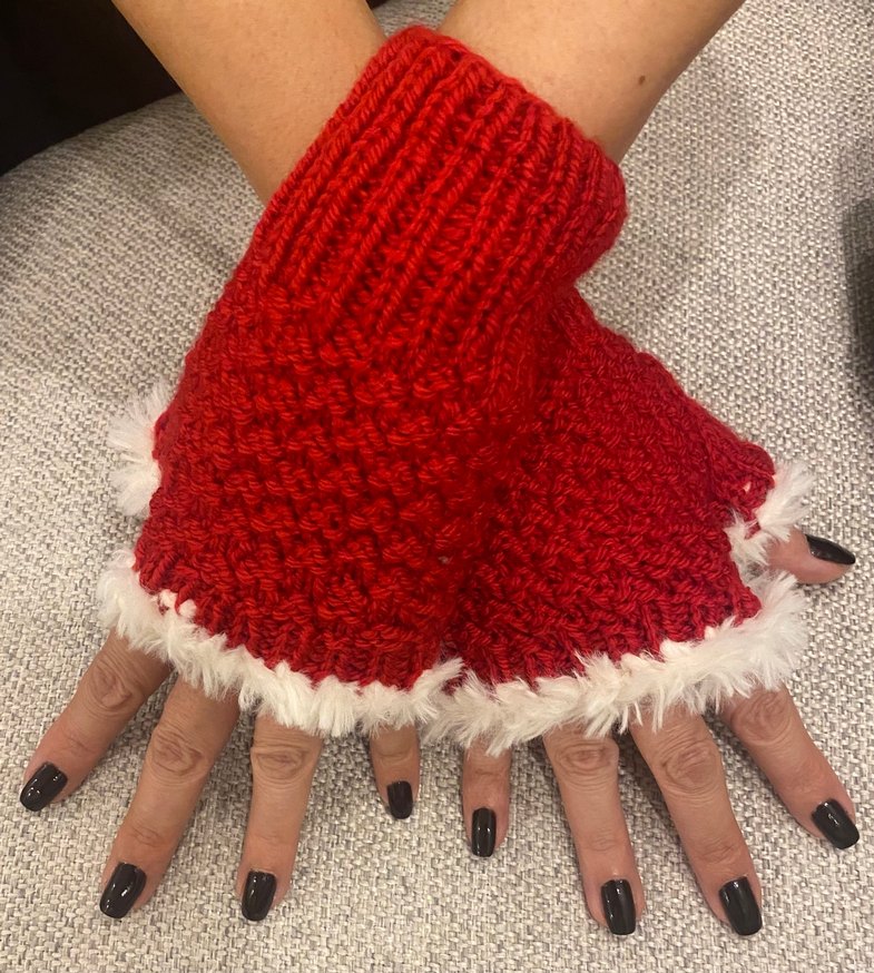 Kırmızı örgü kadın eldivenleri, beyaz tüylü kenar detaylarıyla sıcak ve renkli bir bohem tarz sunar. Her bir el emeği adet fiyatıdır