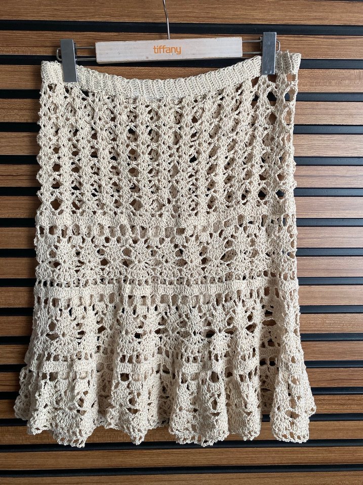 Tamamen el işi örgü, çok emekli ve özel bir parça Doğal iplik dokusu sayesinde yazlık, hafif ve nefes alır. Bel kısmı içten şeritli, duruşu çok hoş. Plajda, tatilde ya da basic bir üstle şehirde bohem şıklık için ideal. Durum: sıfır El işi Duman yok Rengi doğal boyasız krem Sorularınızı memnuniyetle yanıtlarım