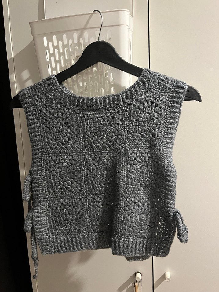 El Örgüsü Gri Crop Yandan Bağlamalı Süveter