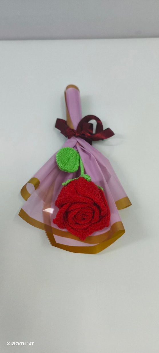 Kurdele detaylı, kırmızı tığ işi gül ve yeşil yapraklı renkli güller istediğiniz renk ve sayıda sipariş verebilirsiniz adet fiyatıdır