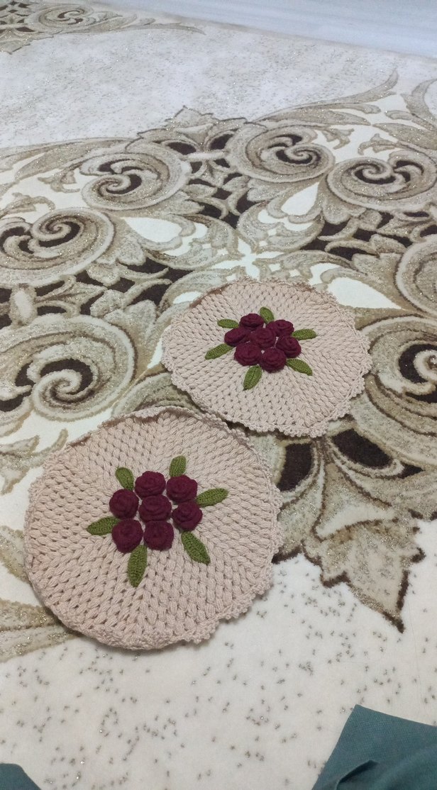 Yumuşak iplikten el örgüsü, gül desenli yuvarlak lifler, geleneksel ev kullanımı için uygundur.