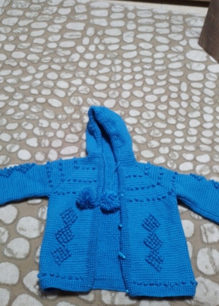 Koyu mavi,el örmesi kalın kapusonlu hirka