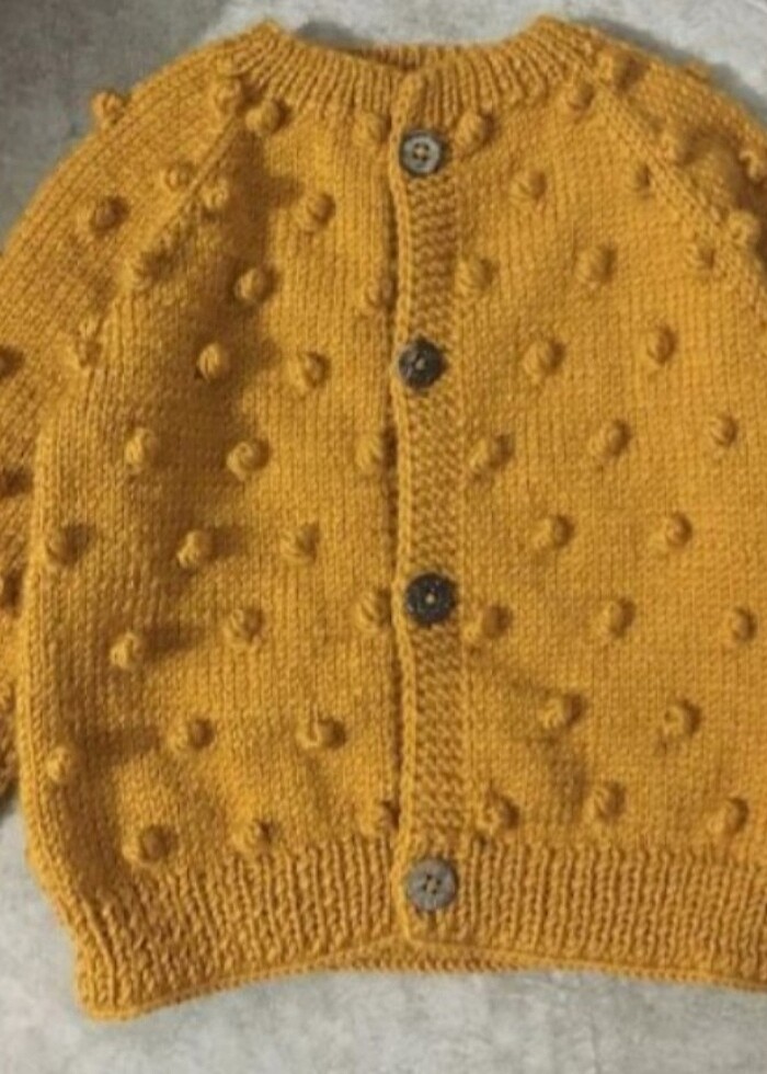 Hardal renk fıstık model el örgüsü sıfır ürün hırka 9_12 aylık bebeklere unisex model