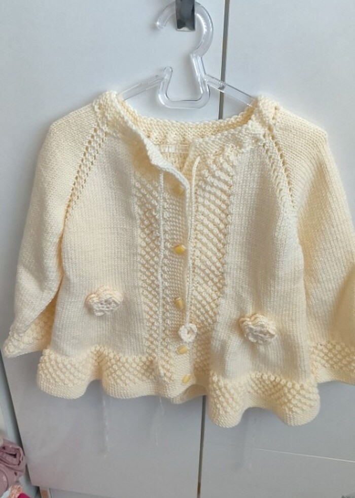 Açık sarı 2-3 yaşa uygun el örgüsü şık hırka
