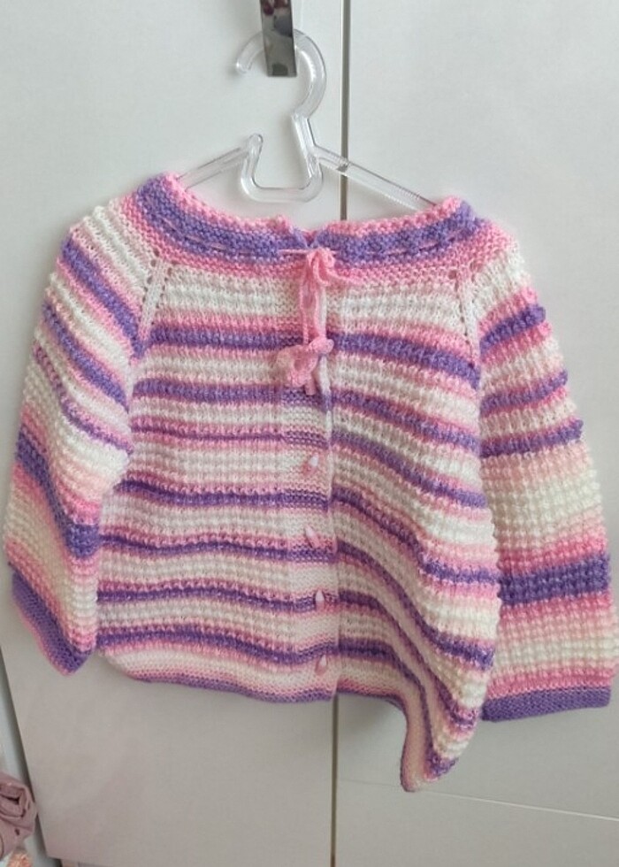 El örgüsü pembe mor tonlarında 3-4 yaş hırka
