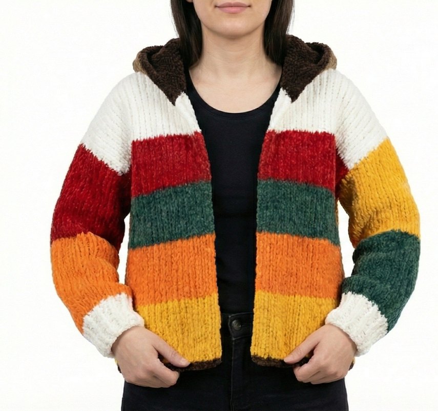 Ürün Özellikleri: ✔️ Kadife kalın iplik ✔️ %100 el örgüsü – el emeği göz nuru ✔️ Yumuşak, sıcak ve rahat doku ✔️ Kapüşonlu tasarım ✔️ Günlük ve casual kullanım için ideal ✔️ Sonbahar & kış sezonuna uygun Soğuk havalarda şıklık ve konforu bir arada sunan bu el örgüsü kadife iplik bayan hırkası, yumuşacık dokusu ve sıcak tutan yapısıyla öne çıkar. Kalın kadife iplikle tamamen el emeği olarak örülmüş olup cilt dostudur ve kaşındırmaz. Renk bloklu modern tasarımı sayesinde günlük kombinlerden hafta sonu şıklığına kadar birçok stile uyum sağlar. Kapüşonlu yapısı ise hem sportif hem de kullanışlı bir görünüm sunar. Sonbahar ve kış aylarında rahatlıkla tercih edilebilir.