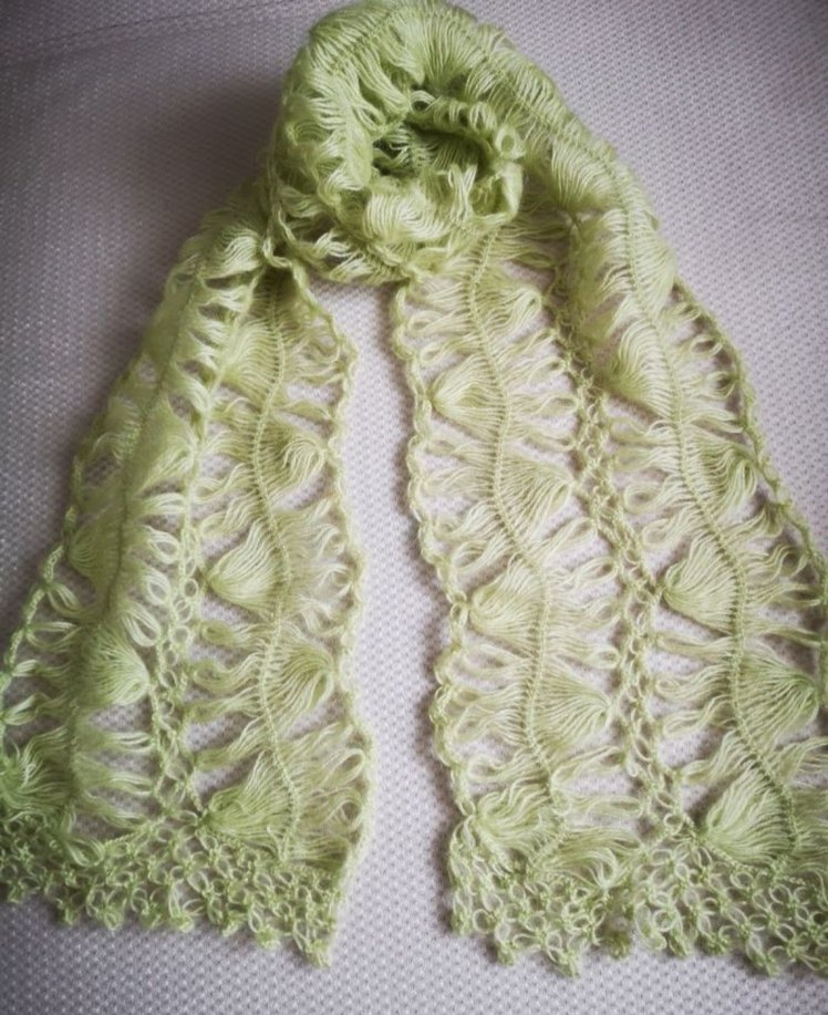 Pastel, su yeşili renkli, şık, nakışlı kadın fular. Bohem ve retro tarzına uygun, rahat bir görünüm sağlar. Yeni, hiç kullanılmadı. En 20, boy 150 cm.