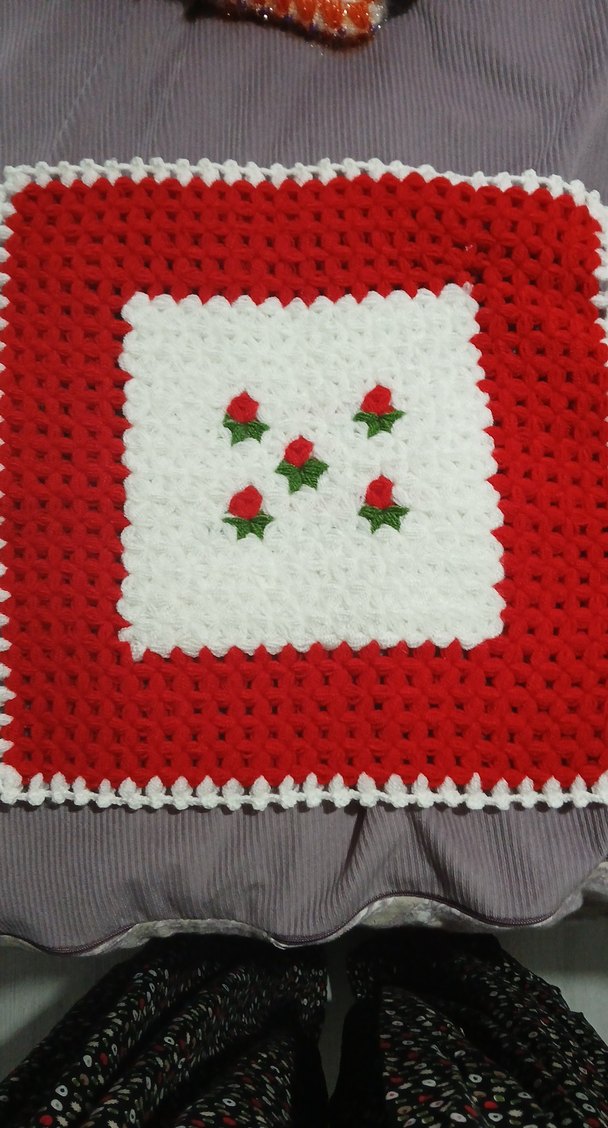 Renkli kırmızı el örgüsü banyo süngeri, çiçek detaylarıyla yumuşak bir doku sunar.