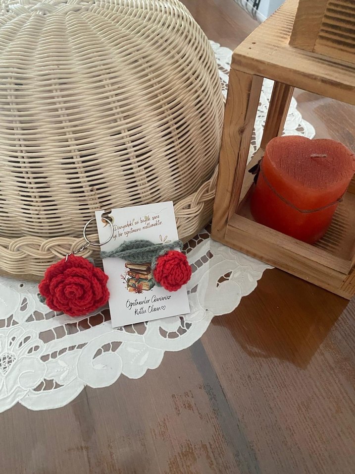 El Örgüsü Kırmızı Gül Anahtarlık & Kitap ayracı