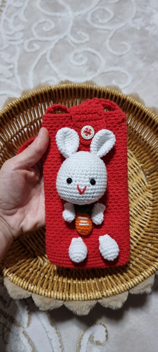 El Örgüsü Kırmızı Tavşanlı Telefon Kılıfı