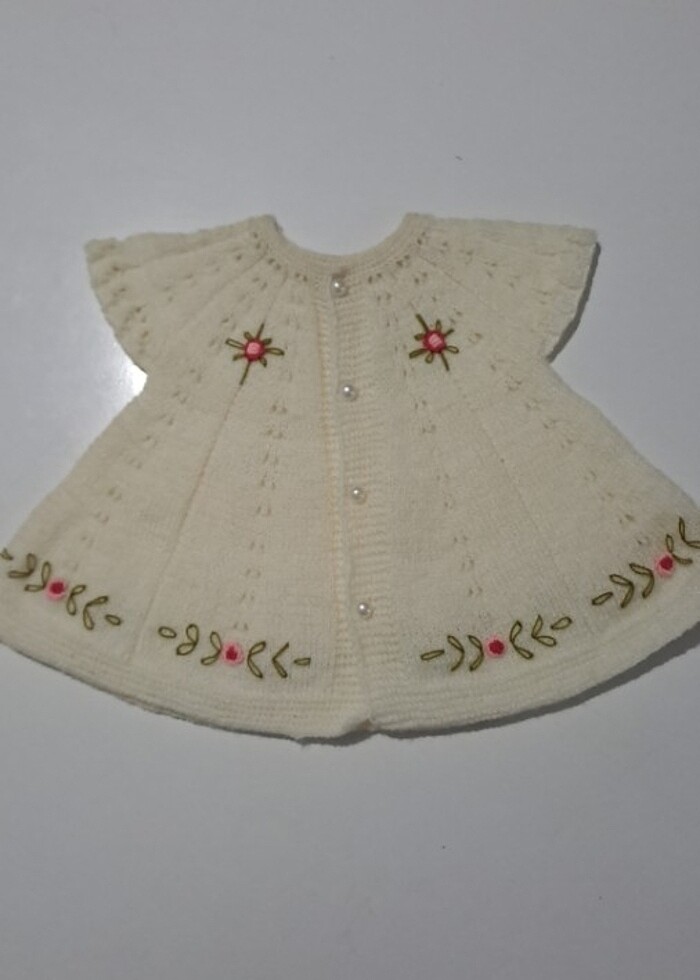 Omuzdan aşağı 33 cm Kol altı genişliği 25 cm etek ucuna doğru 48 cm e kadar genişliyor. Kullanılan ip hafif tiftiklidir.