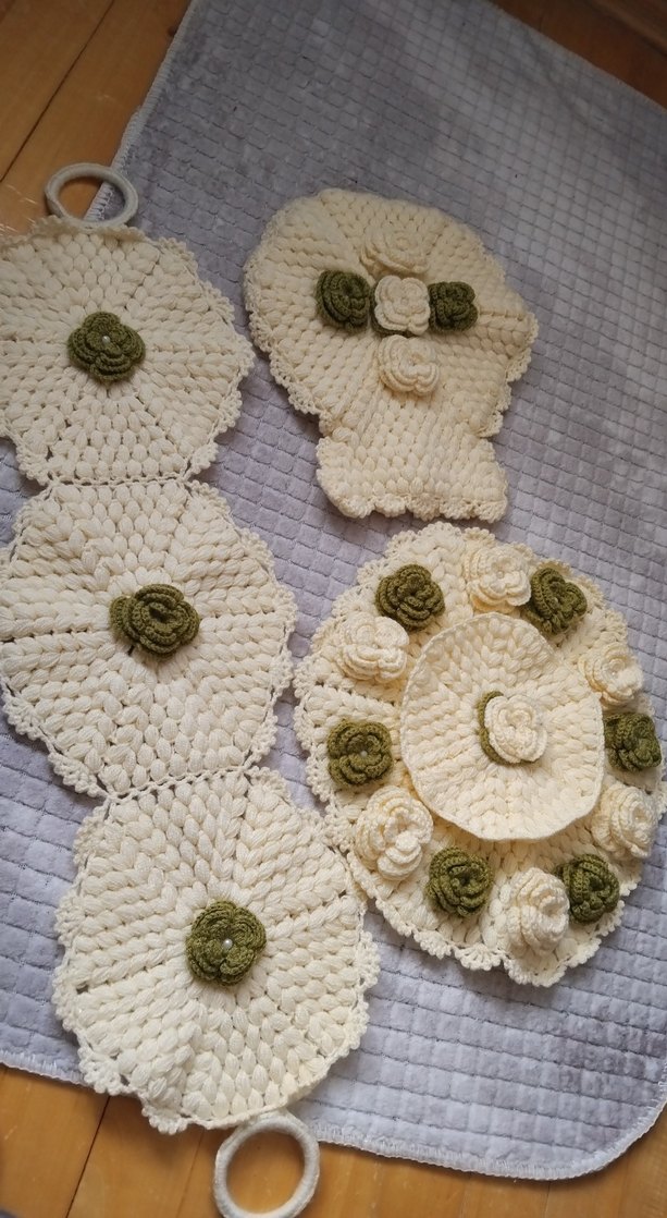 El Örgüsü Krem Rengi Çiçekli lif 2 li
