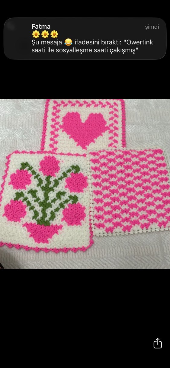 El örgüsü, pembe renkli, kalp ve çiçek desenli yumuşak iplikten yapılmış banyo süngerleri.