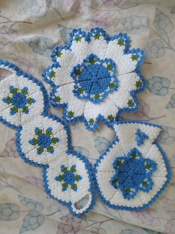 El Örgüsü Mavi Beyaz lif Set