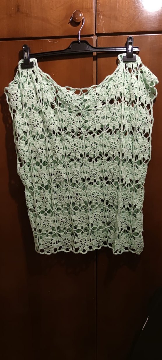Tamamen el örgüsüdür. Hiç giyilmemiştir. Mint yeşil tonunda, çiçek motifli dantel örgü modeldir. Yaz aylarında atlet veya badi üzerine rahatlıkla kombinlenebilir. Hafif ve şık bir duruşa sahiptir. Herhangi bir kusuru veya deformesi yoktur.