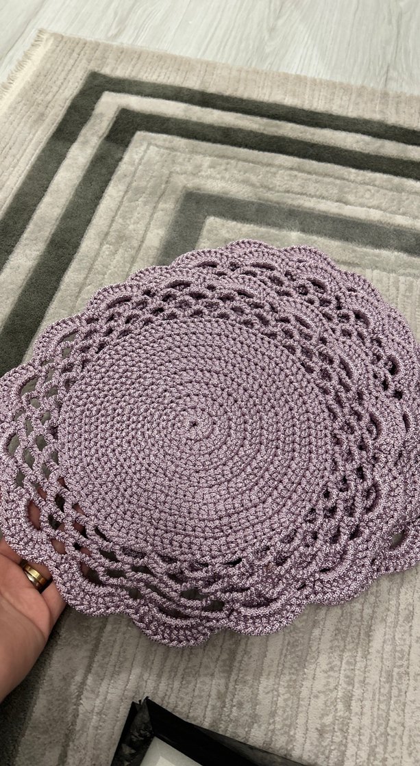 El örgüsü, mor renkli, bohem tarzda, detaylı tığ işi desenlere sahip supla. Birkaç defa kullanıldı