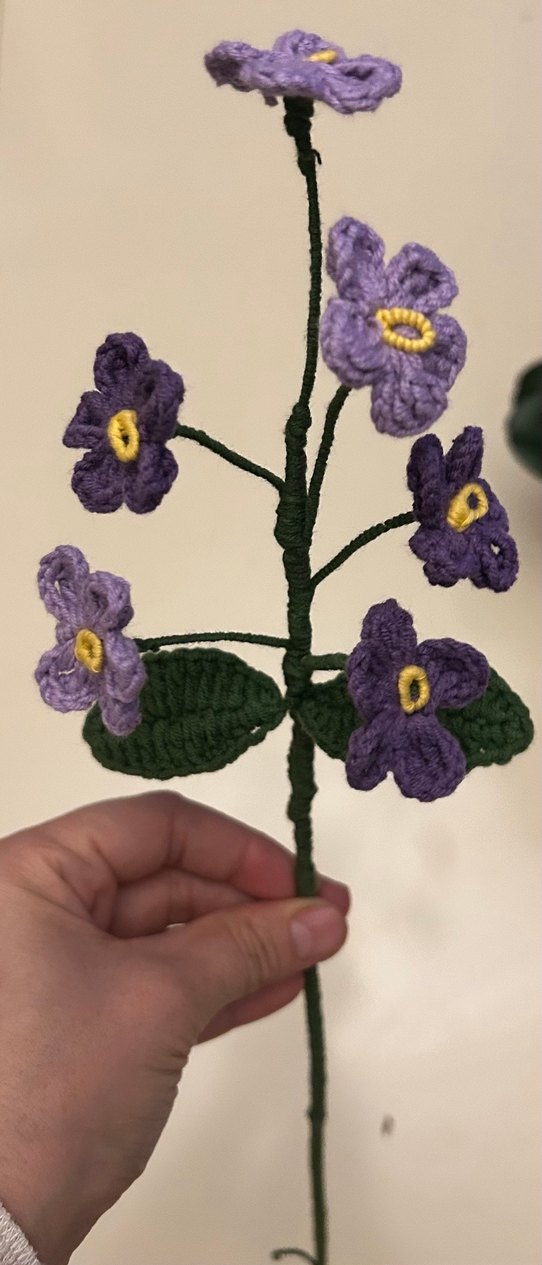 İstenilen renk ve adette hazırlabilir tek dal fiyatıdır Bohem tarzda el örgüsü, mor çiçekler ve yeşil yapraklarla süslenmiş dekoratif dal.