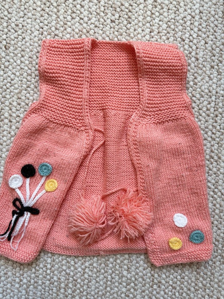 El orgusu Nakışlı renkli detaylar ve ponpon süslemelerle pastel pudra pembesi, kolsuz örme yelek. Bol kesim, bohem tarzda.