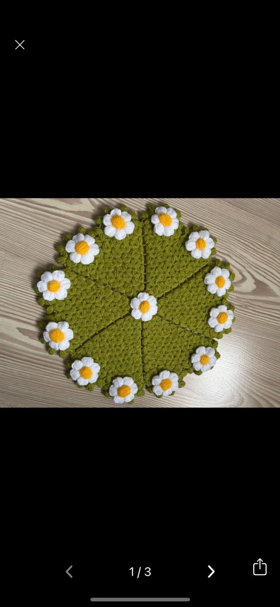 El örgüsü, el emeğidir. Yeşil renk, beyaz papatyalarla süslü lif.