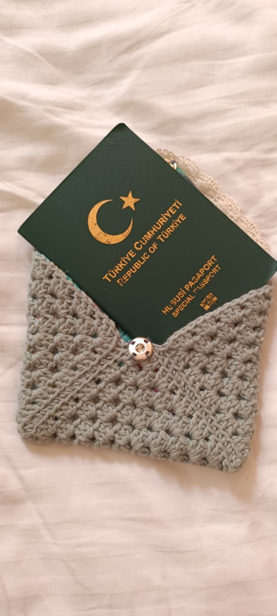 Türkiye pasaportu için çıtçıtlı , kapaklı.el örgüsü yumuşak ve koruyucu kılıf. hediye de düşünülebilir. içine aynı anda 4 adet pasaport koyulabiliyor. para cüzdanı olarak ta kullanılabilir. çok amaçlı kılıf, cüzdan, minik el çantası.