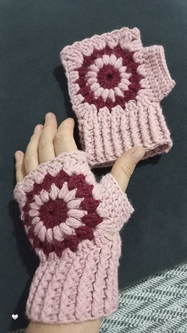 SİPARİŞ ÜZERİNE ÖRÜYORUM Pembe örgü, parmakları açık bohem tarzı eldivenler, rahat ve pastel renklerle retro hippie görünüm sunar.