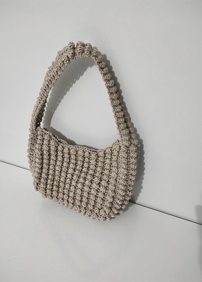 El örgüsü bej popcorn makrome çıtçıtlı kol çantası