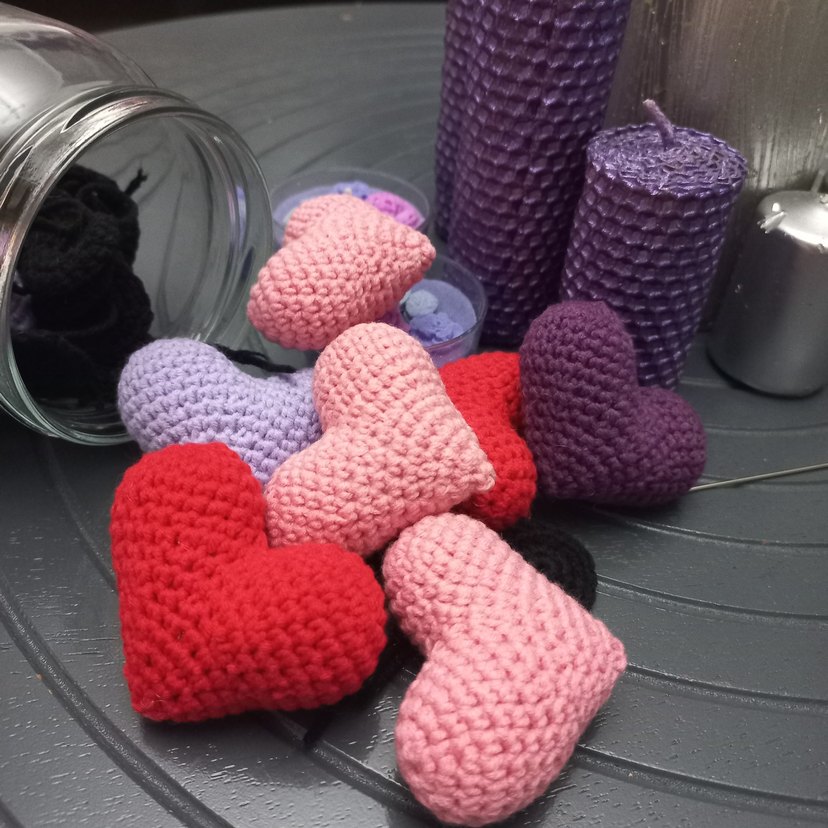 Yumuşak iplikle el örgüsü, çeşitli renklerde bohem tarzda kalpler. Dekorasyon veya hediye için uygun. ❤️