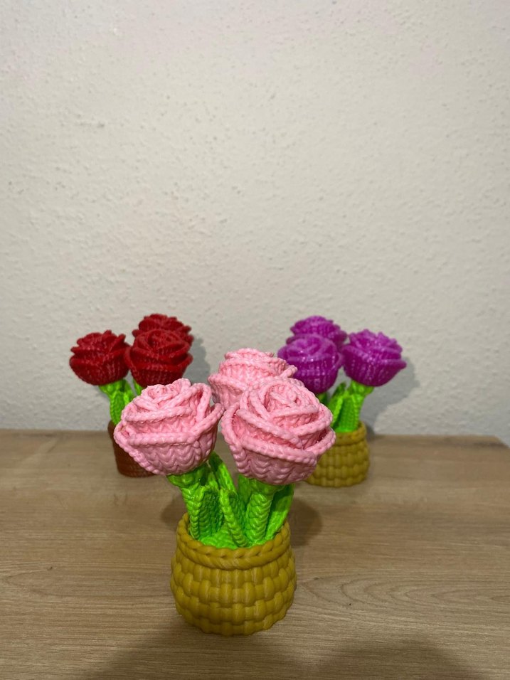 3d renkli güller, küçük örgü sepetlerde pembe, kırmızı ve mor çiçekler ile yeşil saplar içerir. ister tekli ister takım sipariş oluşturabilirsiniz.