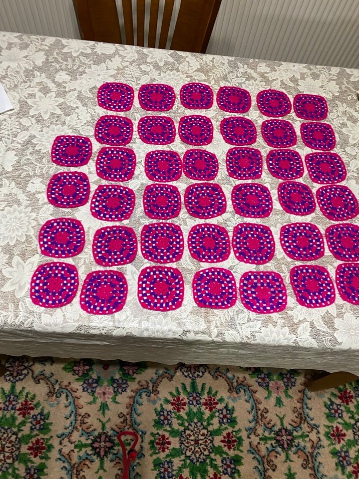 Geleneksel tığ işiyle yapılmış renkli kare motifler, el işi projeleri için uygundur. 40 adet fiyatıdır Fuşya ve mor desenler