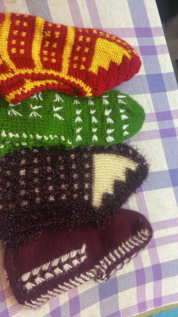 Yumuşak ipten yapılmış, geleneksel desenlere ve dokulu tasarımlara sahip el örgüsü renkli patikler. Adet fiyatıdır