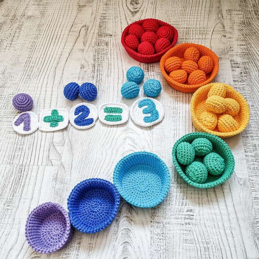 El Örgüsü Renkli Toplar ve Sayılar Seti eğitici örgü oyuncak