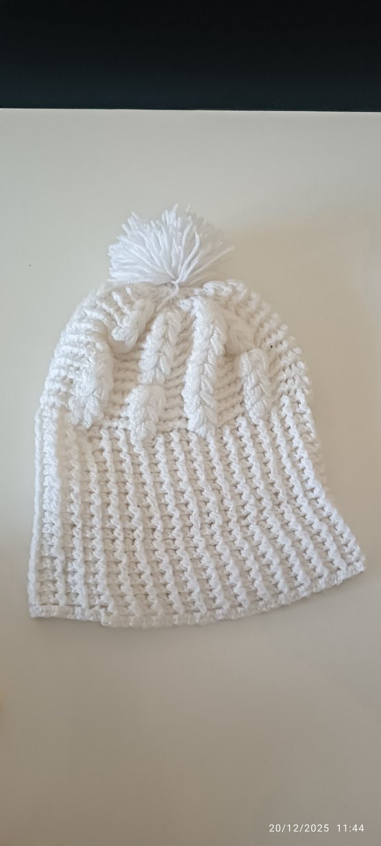 Yumuşak örgüden yapılmış, ponponlu beyaz bere,şapkalar sıcak tutar. ❄️