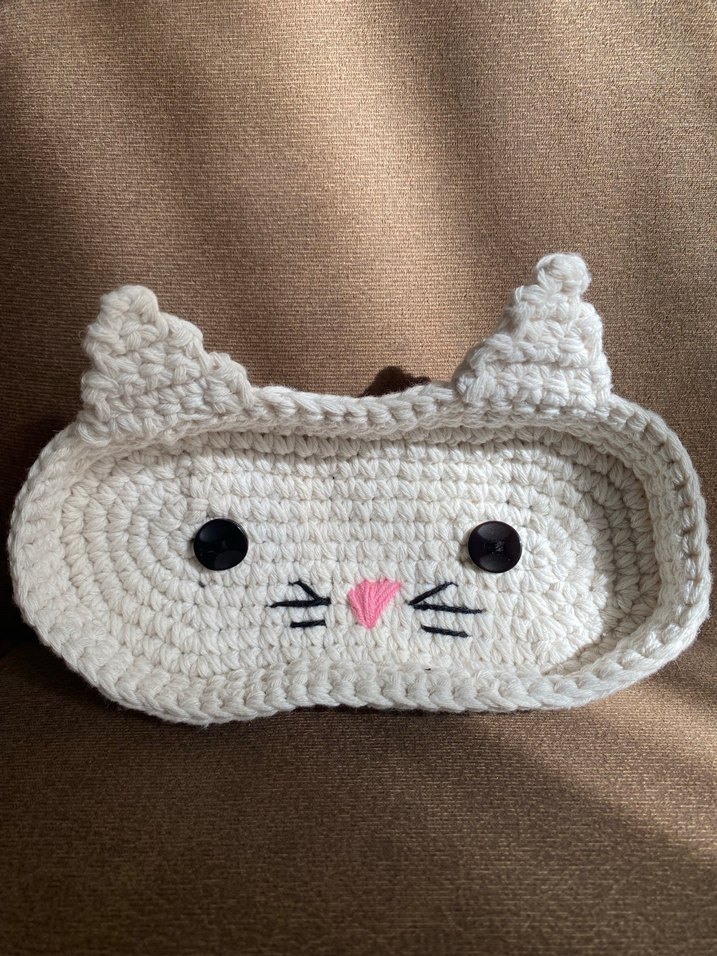 Beyaz renkte, düğme gözlü ve pembe burunlu örgü kedi figürlü yumuşak ve pastel renkli kap. Sınırlı sayıda üretilmiştir.
